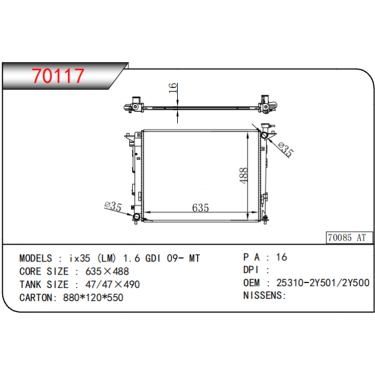 1. تم تطوير المبرد التلقائي TUCSON 2010 1.6 IX35 باستخدام القالب الأصلي ويتوافق مع التجميع الفردي للسيارة الأصلية.